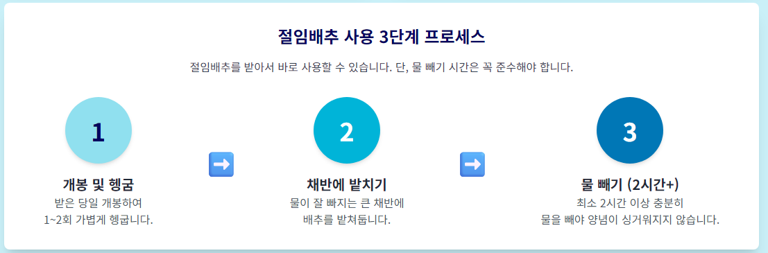 절임배추는 받은 당일 바로 사용하는 게 가장 좋아요!