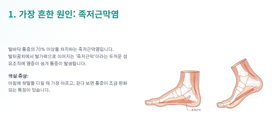 발바닥 통증의 70% 이상이 바로 족저근막염 때문입니다.
