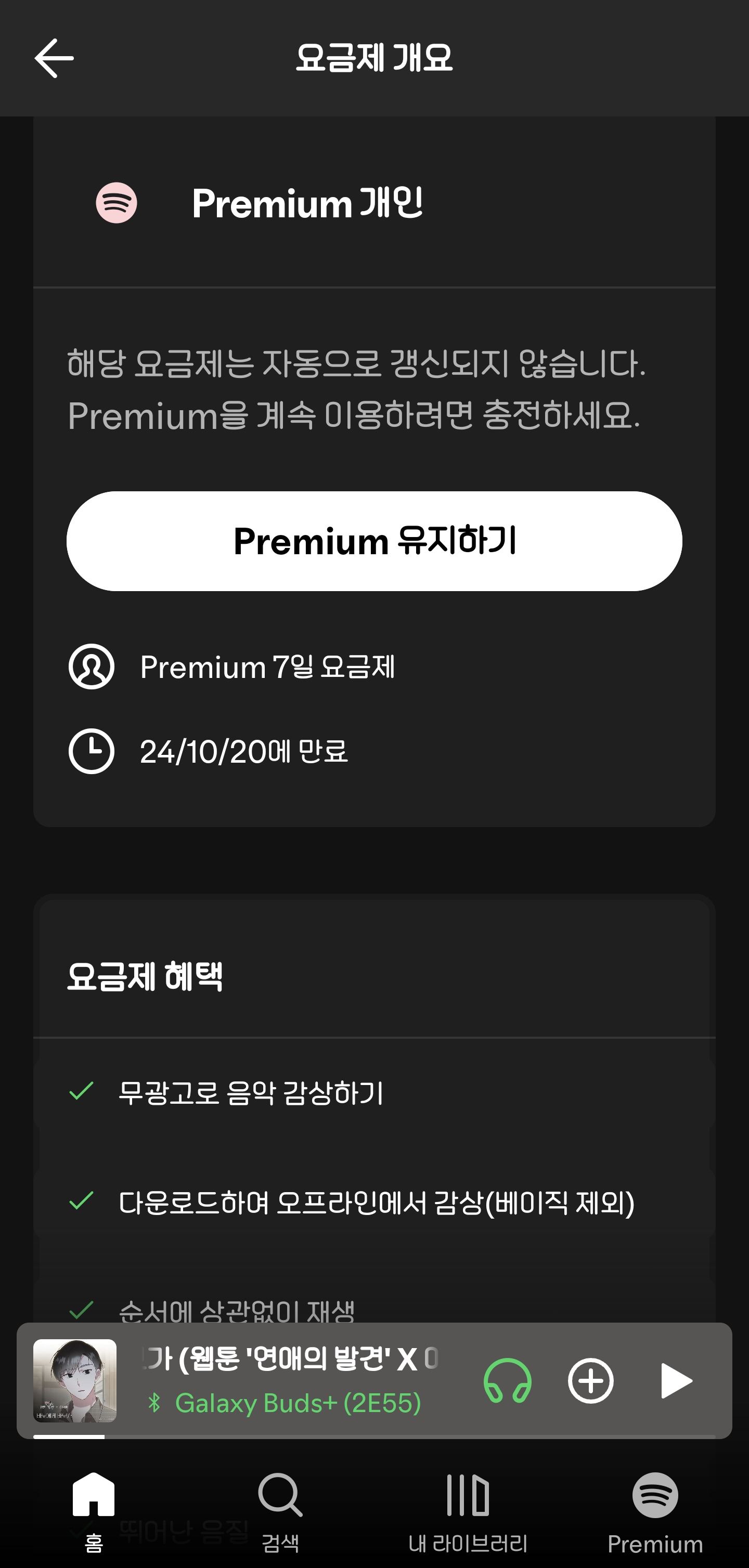 음질:프리미엄은 더 높은 음질의 스트리밍을 제공합니다.
