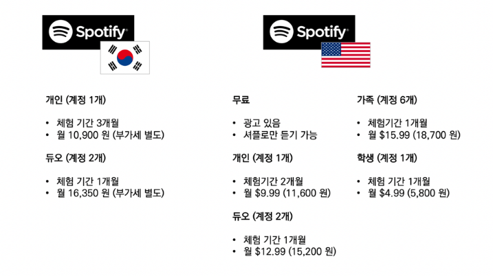 미국과 한국의 스포티파이 프리 차이점