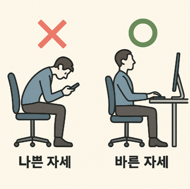 혹시 스마트폰을 보느라 고개를 푹 숙이고 있거나, 의자에 비스듬히 기대어 앉아있진 않나요?