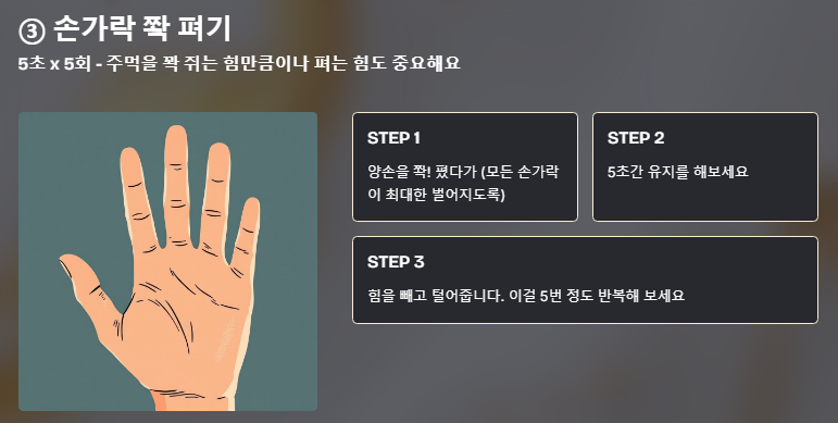 ③ 손가락 쫙 펴기 (5초 x 5회)