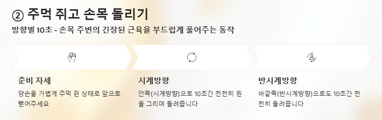 ② 주먹 쥐고 손목 돌리기 (방향별 10초)
