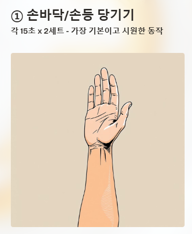 ① 손바닥/손등 당기기 (각 15초 x 2세트)