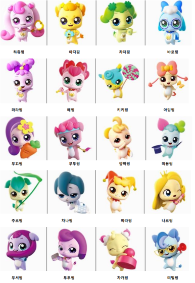 예: 사랑 → 하츄핑 / 용기 → 아자핑 / 행복 → 해핑